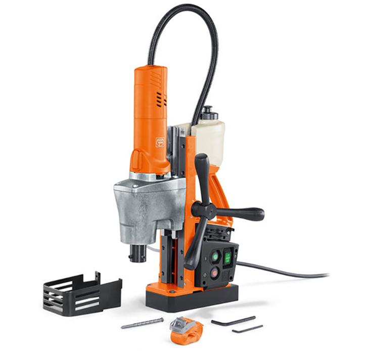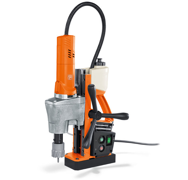 重量轻冲程大的两挡经济型磁力钻,具备基本功能,适用于在车间和施工现场进行空心钻孔和麻花钻孔。