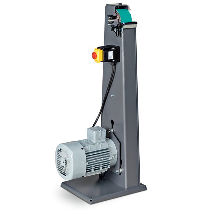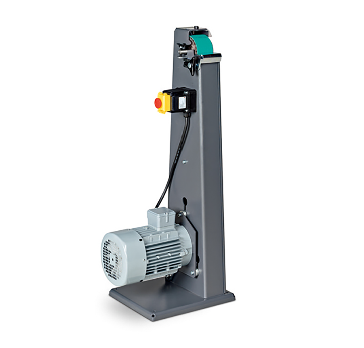 紧凑型砂带机,用于金属加工作业。应用于车间的经济型解决方案。